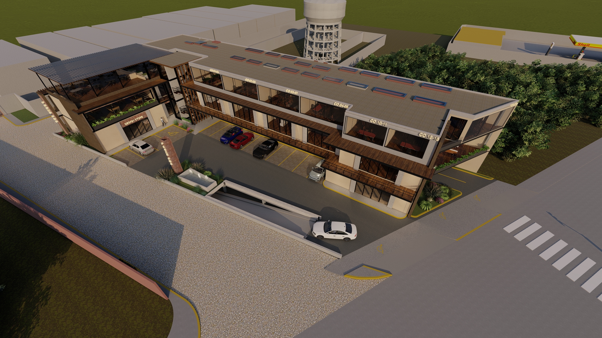 Proyecto de usos mixtos que combina comercio, vivienda, oficinas y un sistema de estacionamiento vertical.